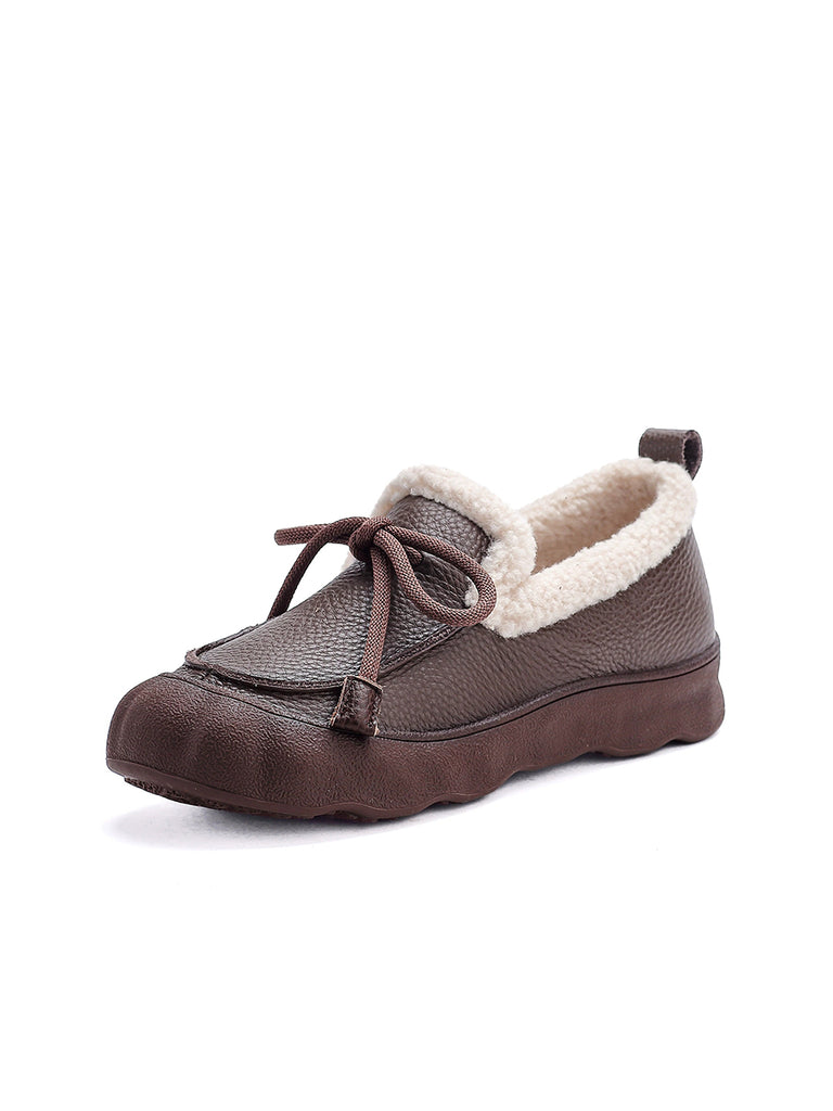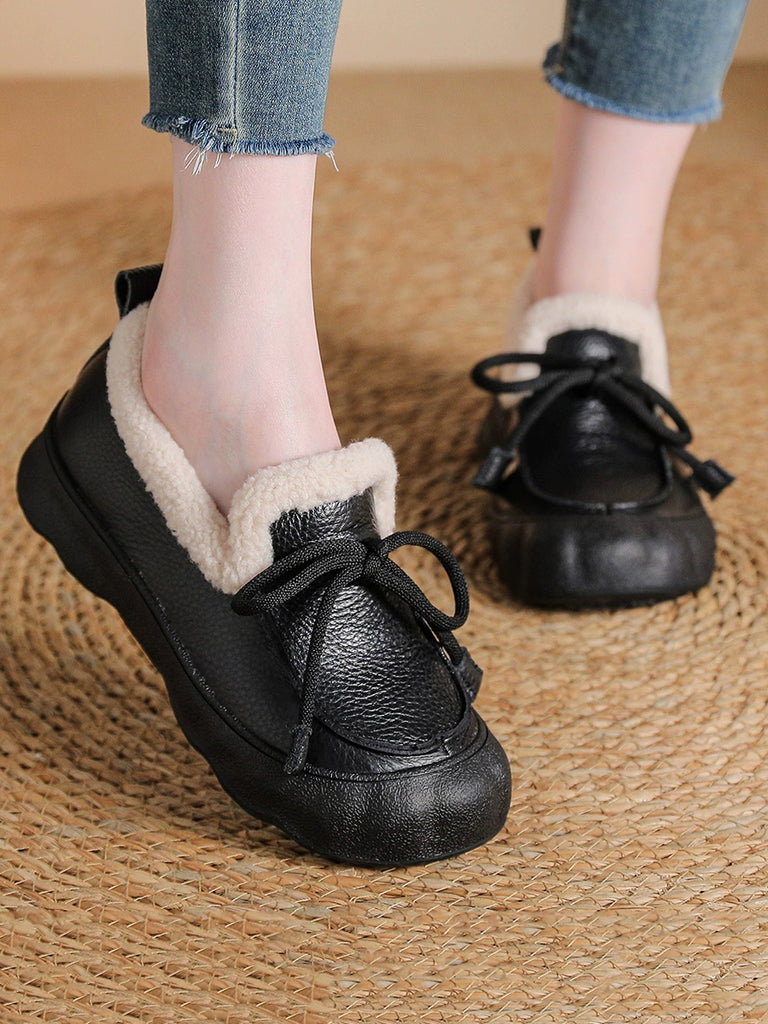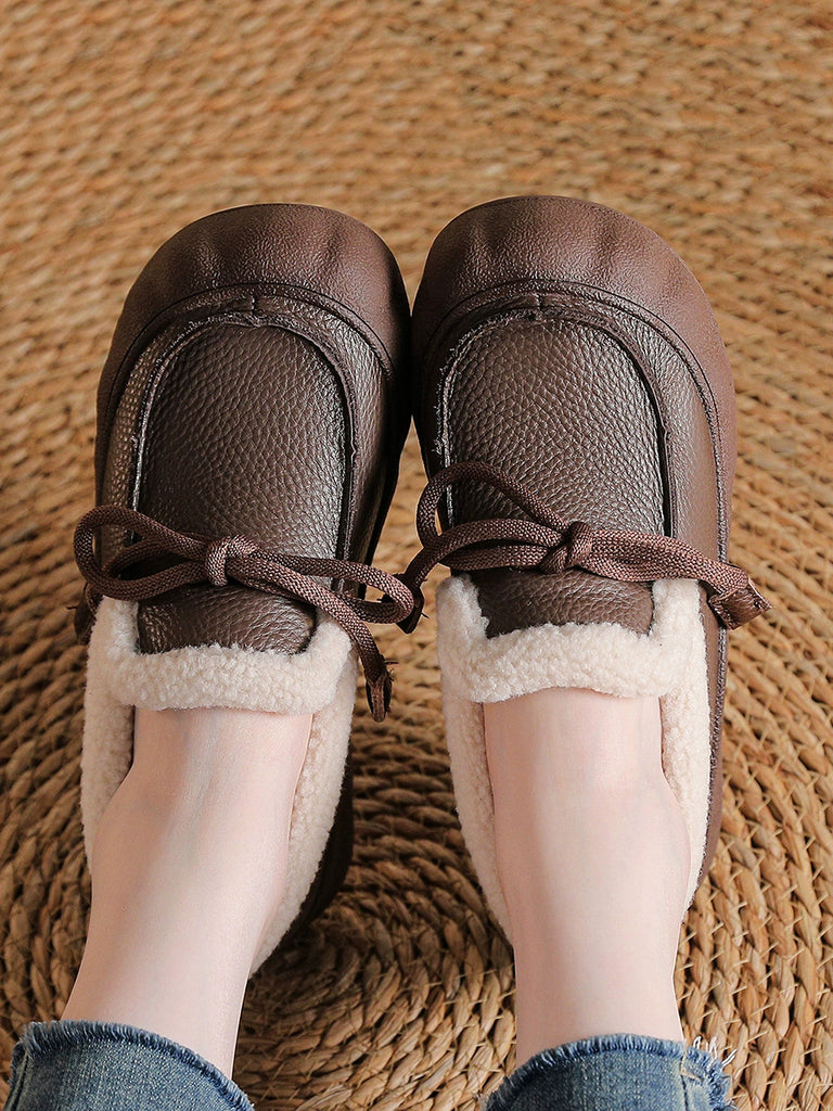 Chaussures d'hiver vintage pour femmes en cuir doublées polaire